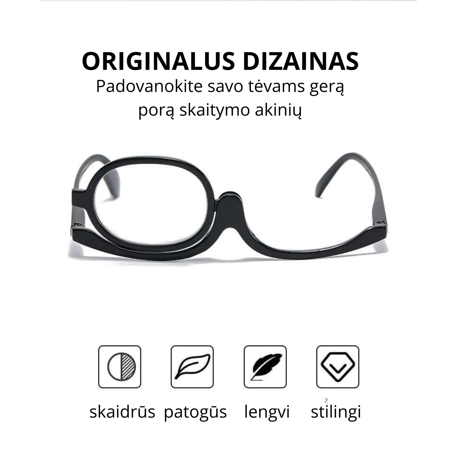 Akiniai makiažui su pasukama lęšio sistema