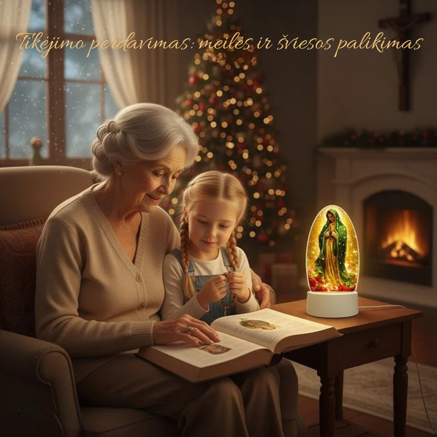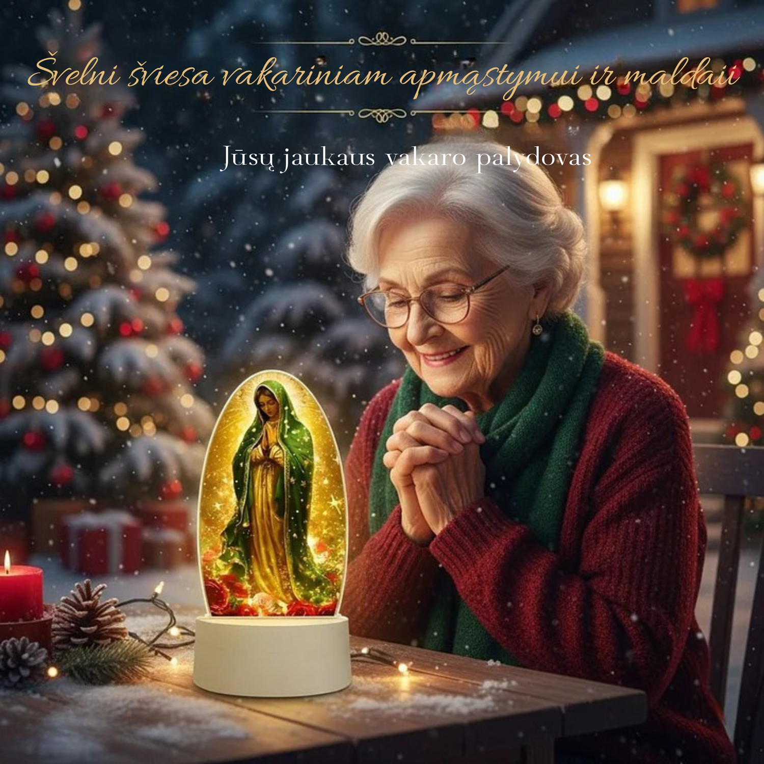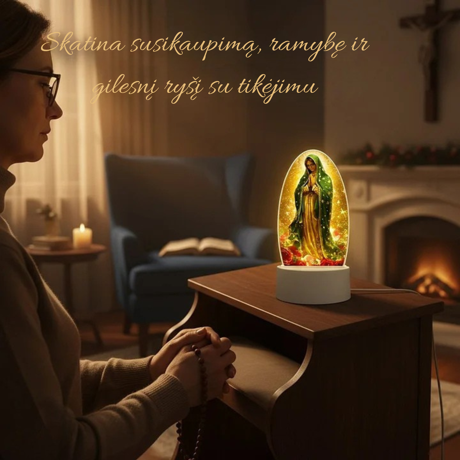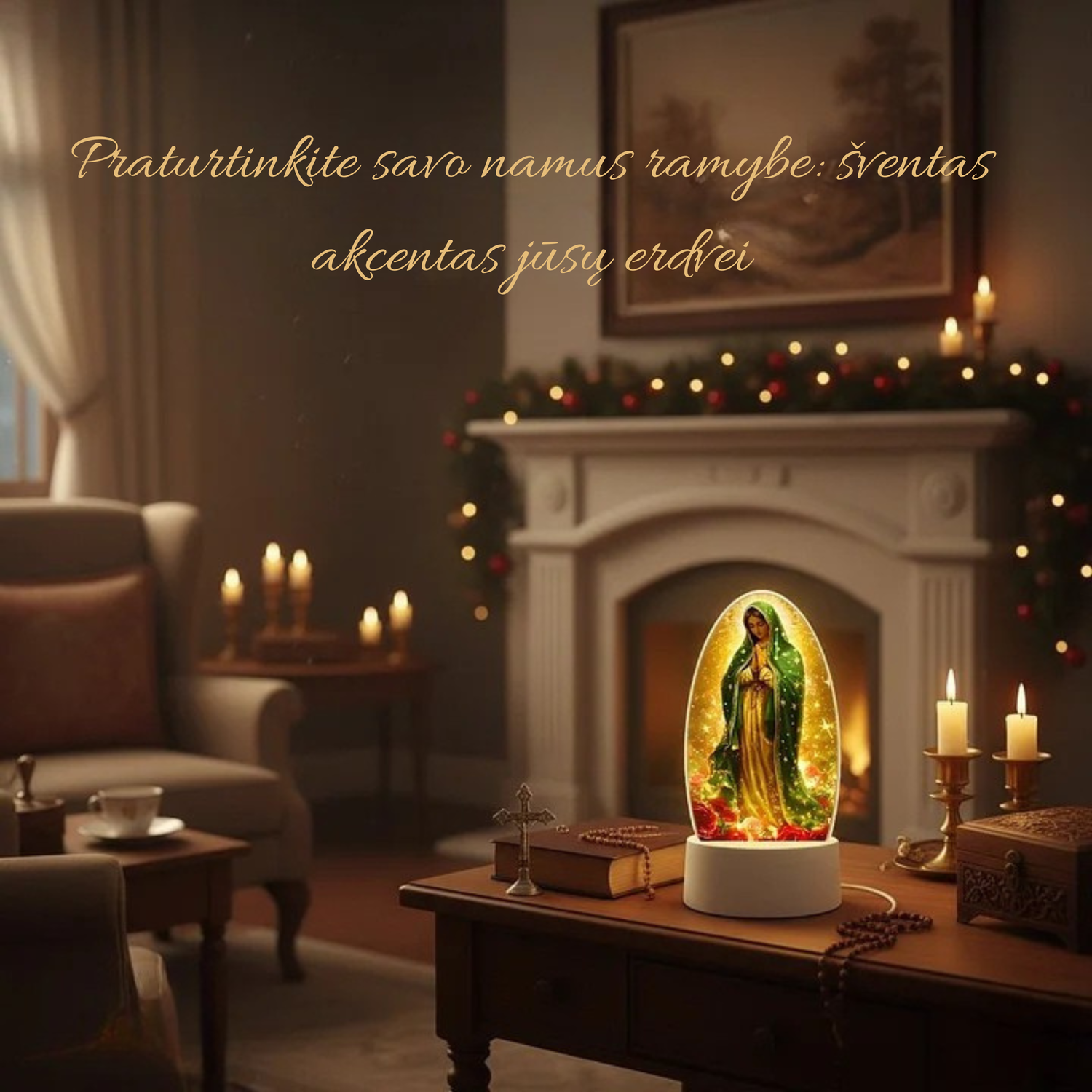 Dekoratyvinė šviesos lempa su šventosios atvaizdu