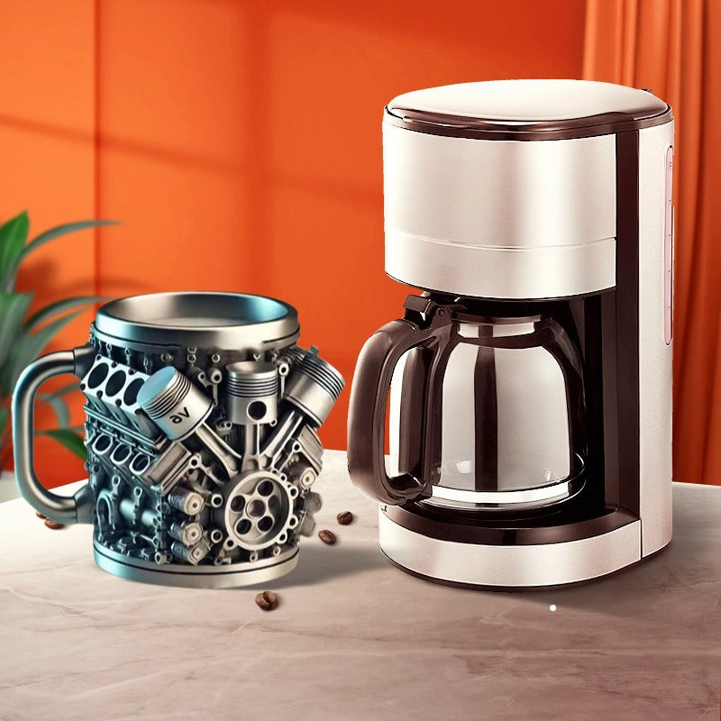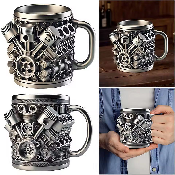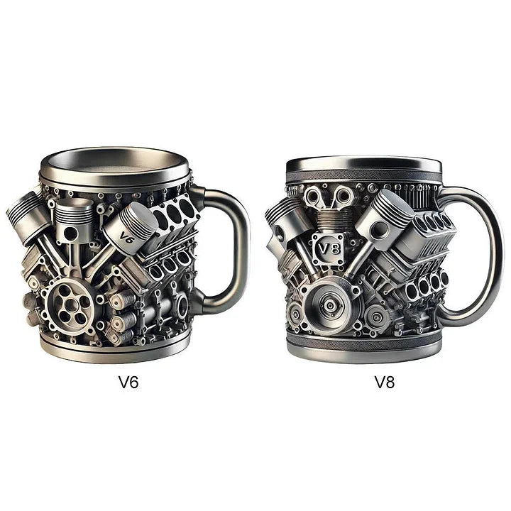 Išskirtinio dizaino kavos puodelis su V6 / V8 variklio motyvu