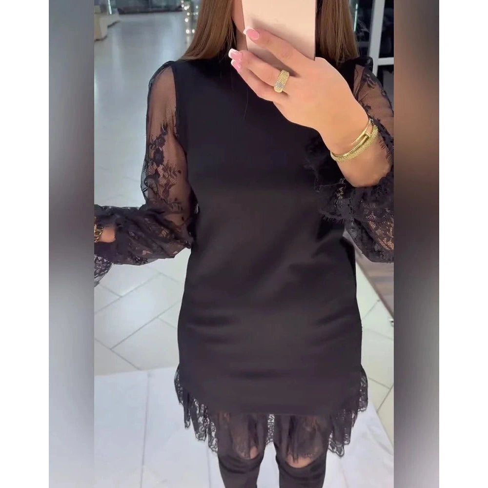 Juoda elegantiška suknelė su nėrinių rankovėmis