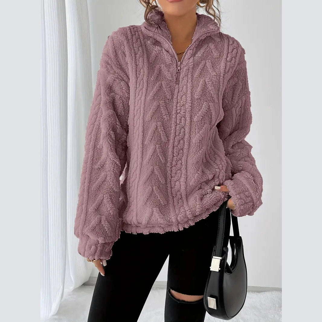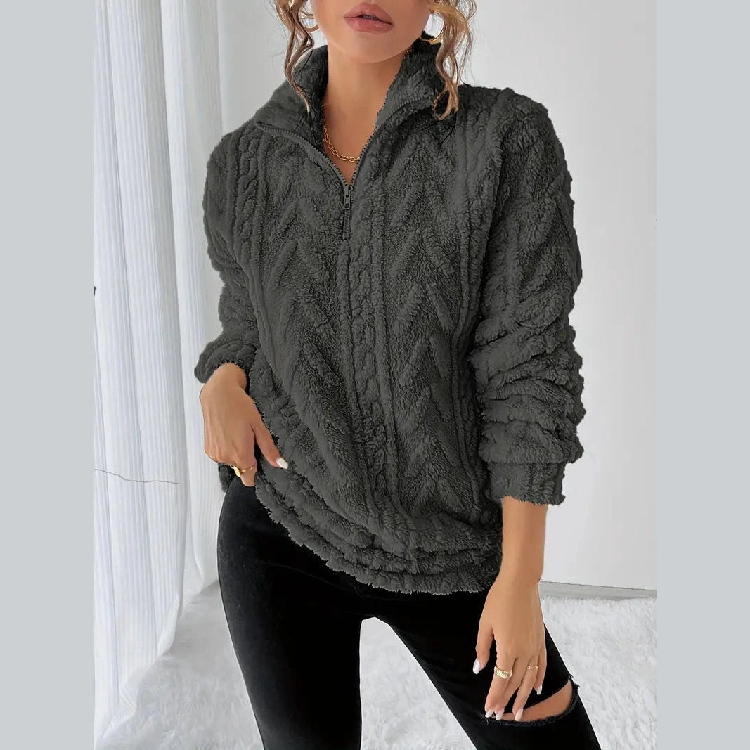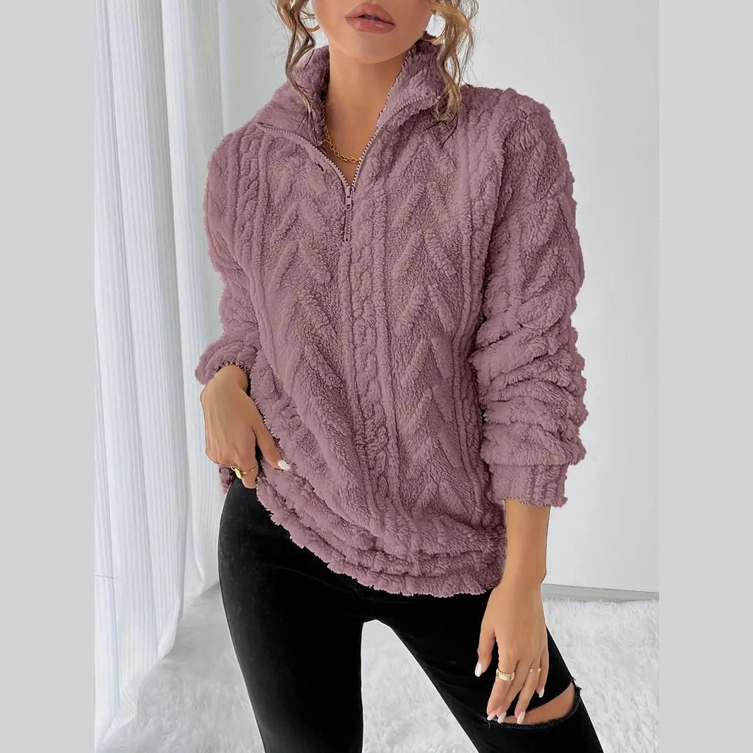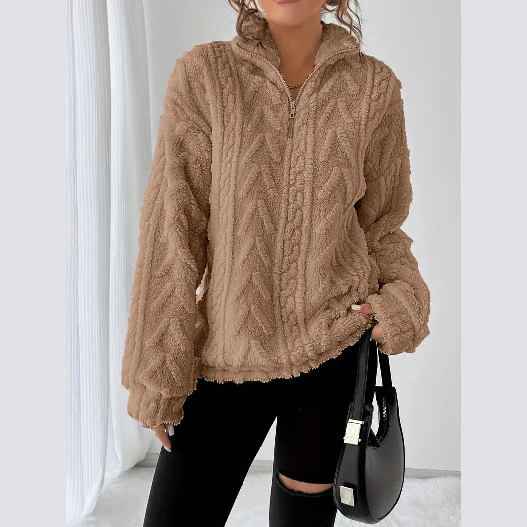 Moteriškas pūkuotas megztinis su užtrauktuku