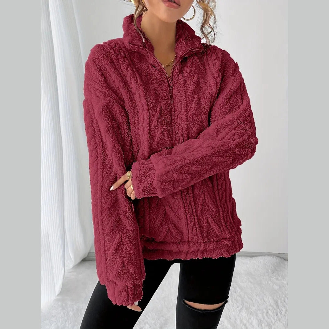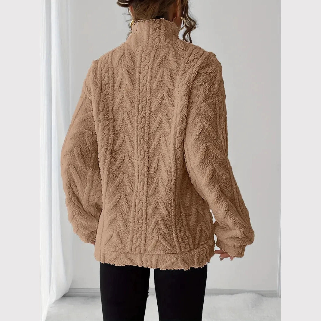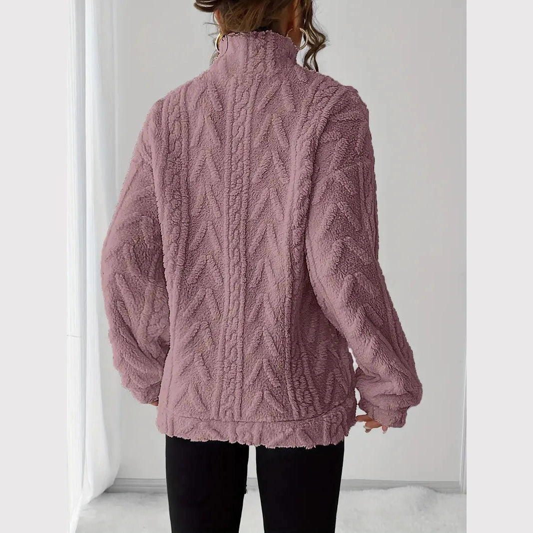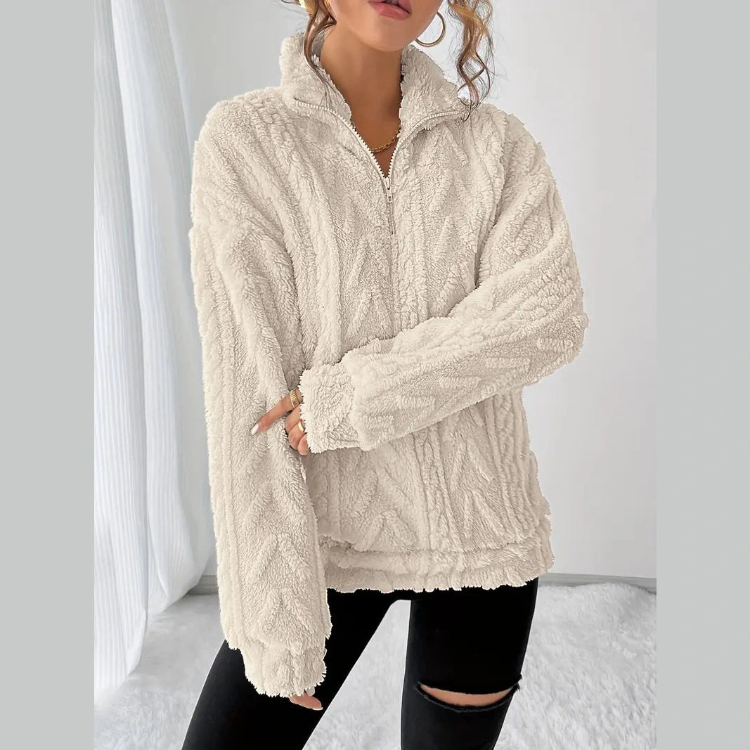 Moteriškas pūkuotas megztinis su užtrauktuku