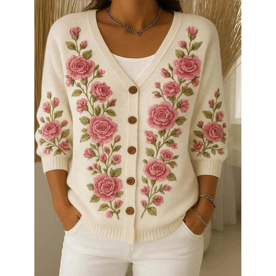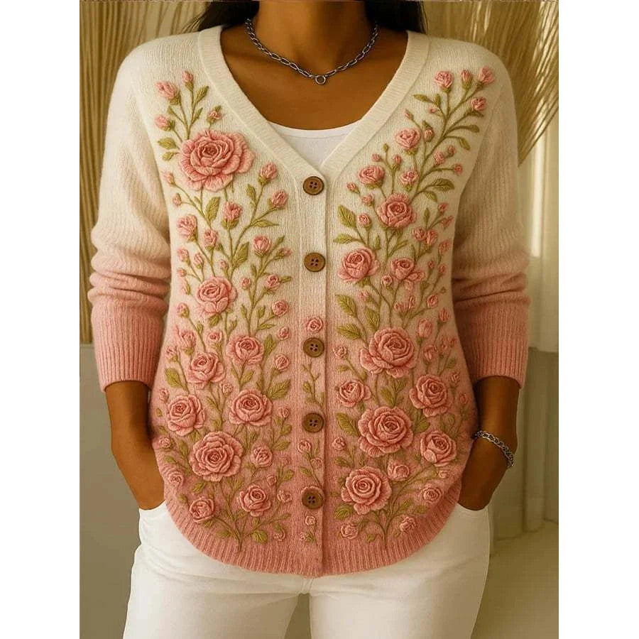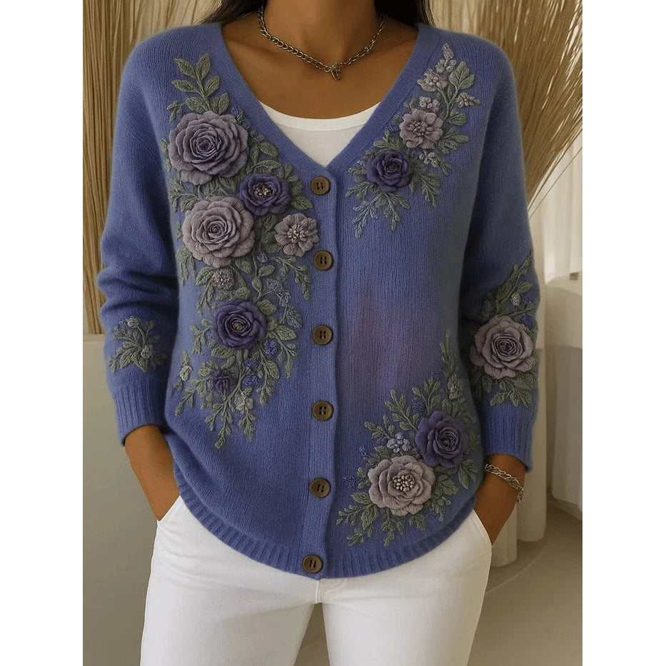 Švelnus Moteriškas gėlių puoštas kardiganas