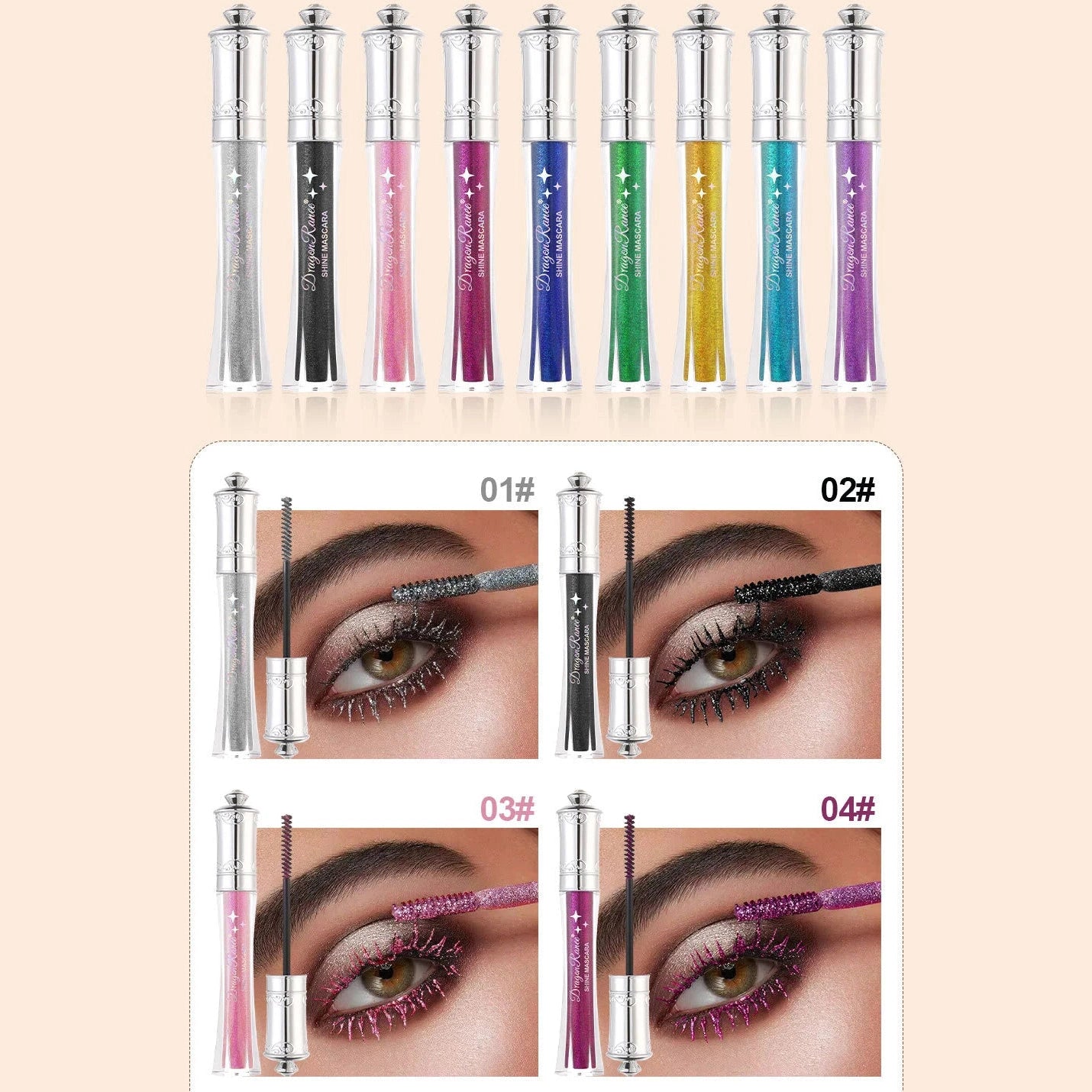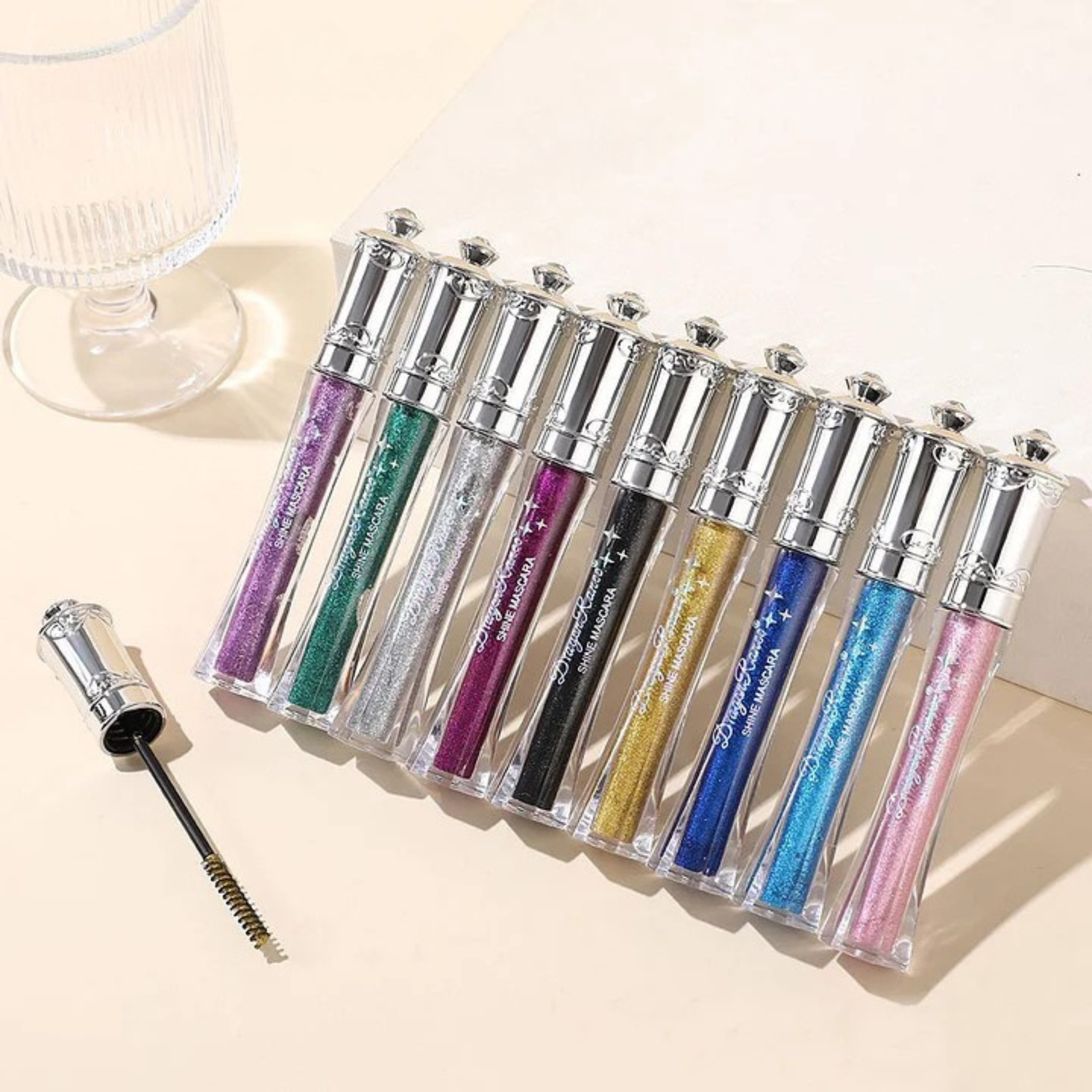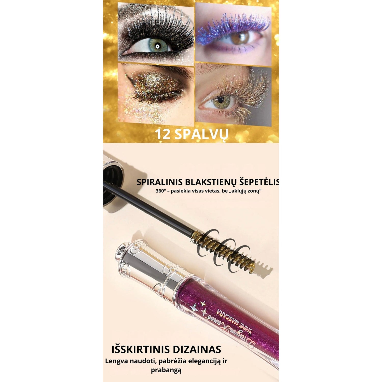 Vandeniui atsparus blizgus tušas blakstienoms