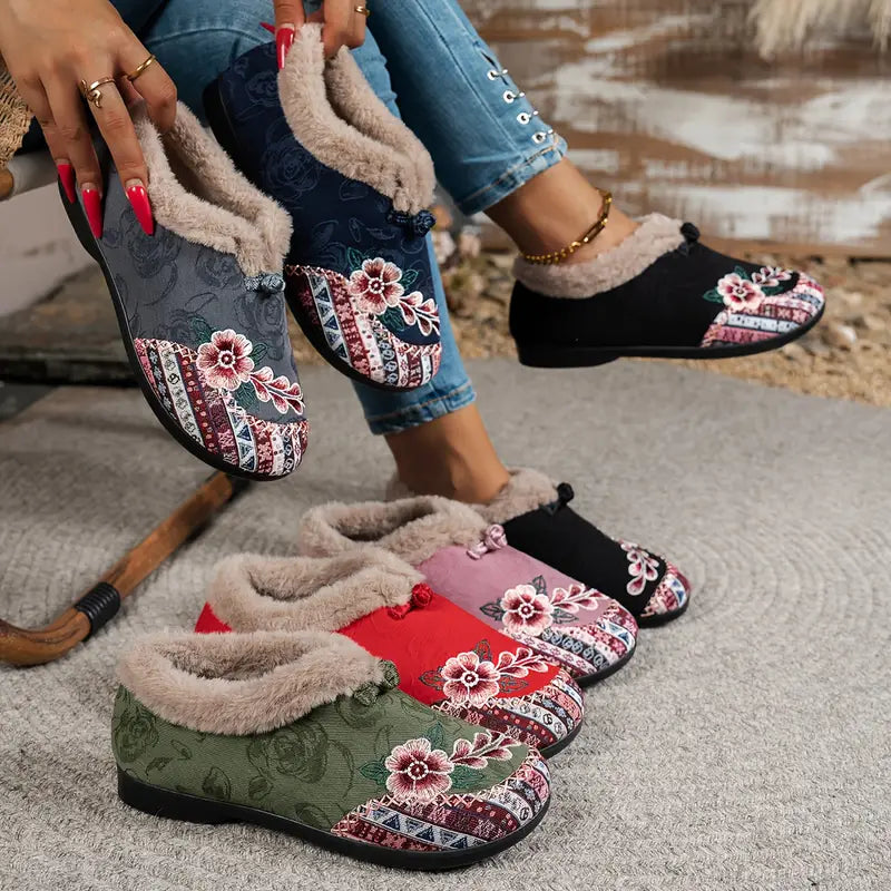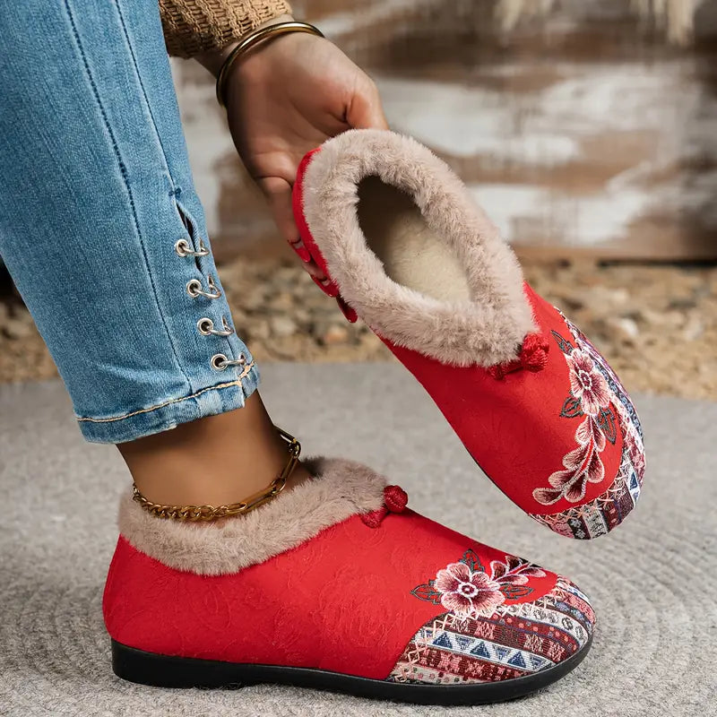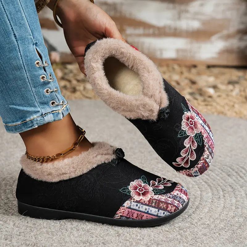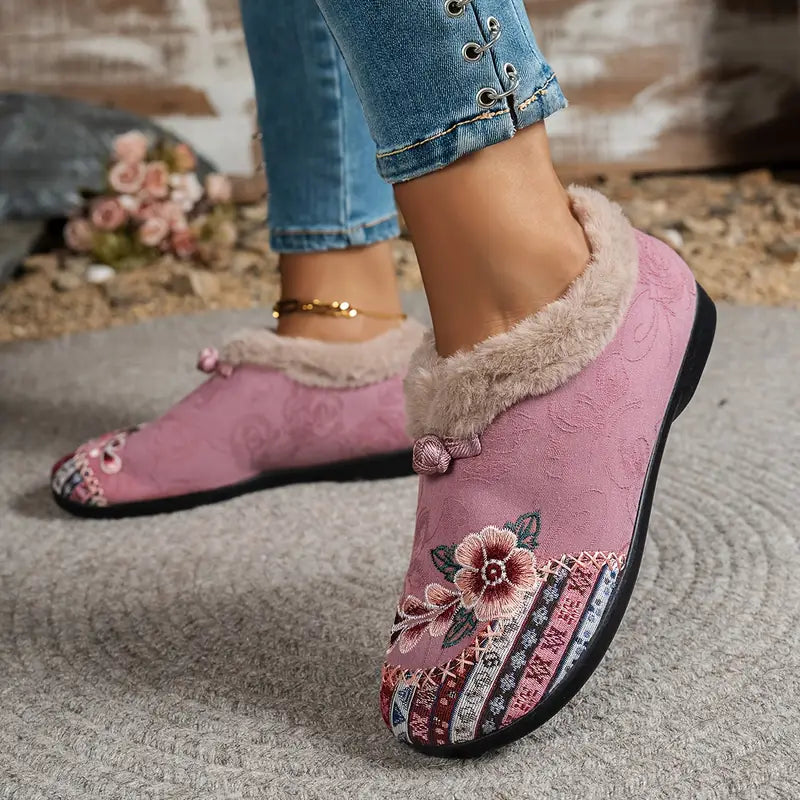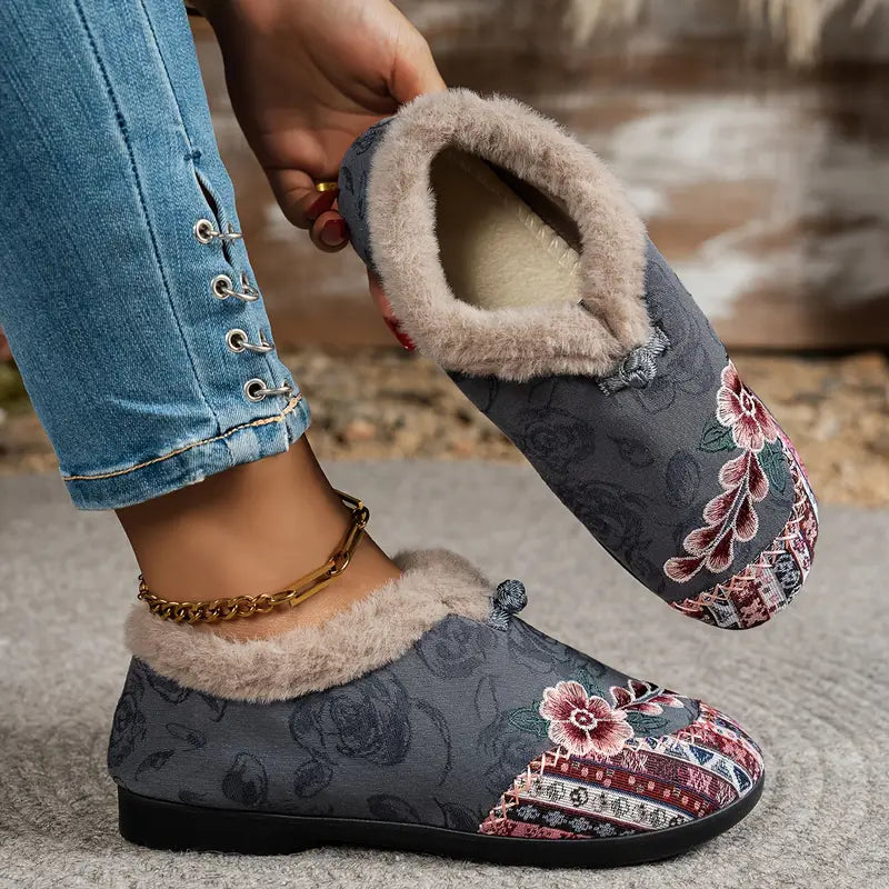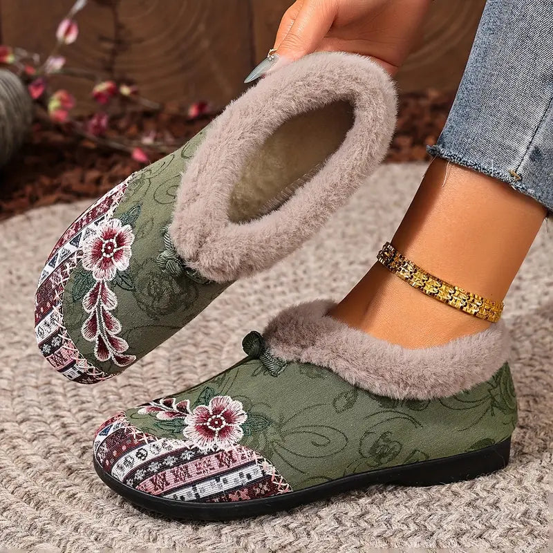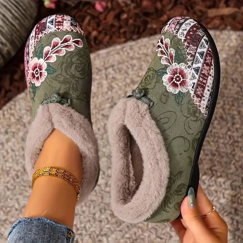Vintage stiliaus Moteriškos šlepetės su kailiuku